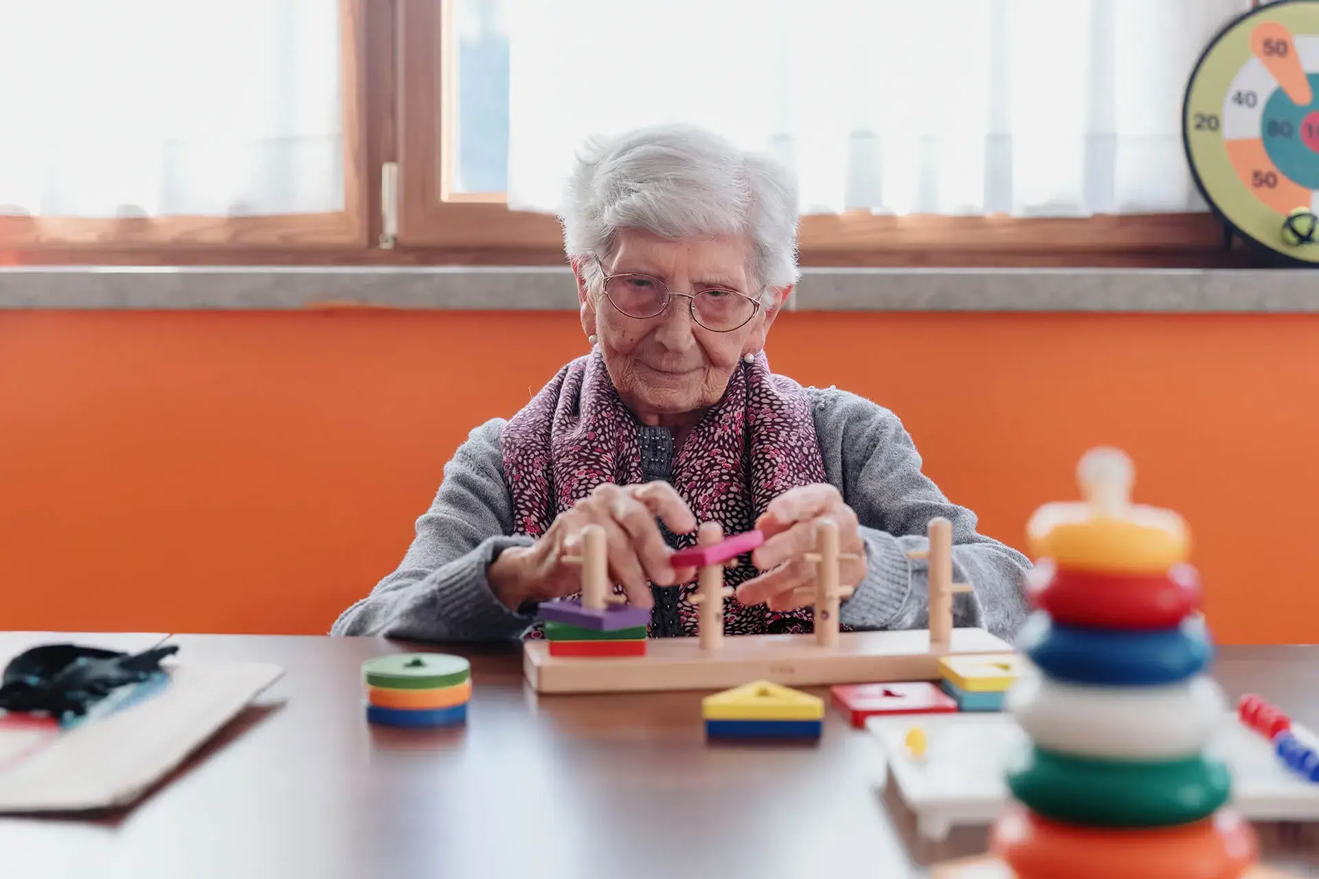 Il servizio è garantito dalla presenza di una psicologa che offre sostegno ai residenti e i loro familiari, in particolare nel periodo immediatamente successivo all’ingresso in struttura e nei momenti successivi di maggiore difficoltà. A questa figura viene affidata la redazione finale del Progetto Assistenziale Individualizzato (P.A.I.) così come risultante dalle periodiche Unità Organizzativa Interne (U.O.I.). Il servizio psicologico inoltre organizza attività individuali e di gruppo volte al mantenimento e al miglioramento delle capacità cognitive residue dei residenti. Valuta il tono dell’umore e l’evoluzione dei deficit cognitivi e delle patologie neurodegenerative, attraverso l’utilizzo di test di screening e colloqui.