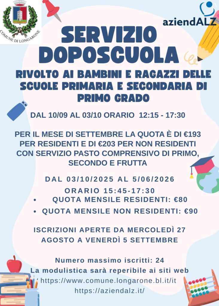 Servizio di doposcuola rivolto ai bambini frequentanti la Scuola dell’Infanzia “A. Lauro” di Longarone.Il servizio si svolgerà presso la scuola stessa, in località S. Chiara,…